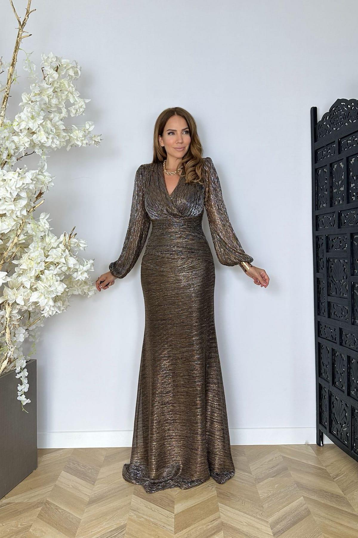 G1592 Maksi Tasarım Abiye Elbise Bronz